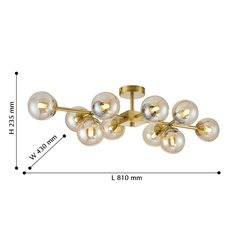 Каркас цвета латунь, плафоны из выдувного стекла янтарного цвета