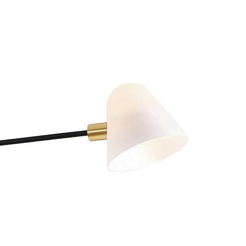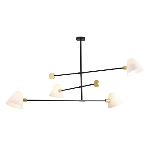 каркас черного цвета, плафоны из белого матового стекла, декоративные элементы цвета золота в виде монеток