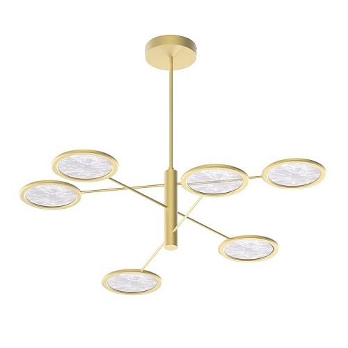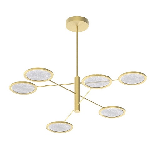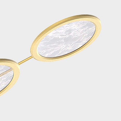 Металлический каркас в цвете матовое золото, плафоны из акрила с эффектом дыма, лента LED расположена по внутреннему периметру плафона.