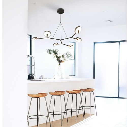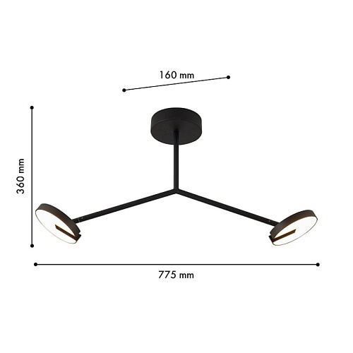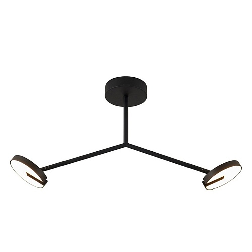 Металлический каркас черного матового цвета, плафоны из белого акрила с металлической окантовкой, специальная декоративная щель в плафонах и встроенный поворотный механизм позволяют поворачивать их под углом 90°.
