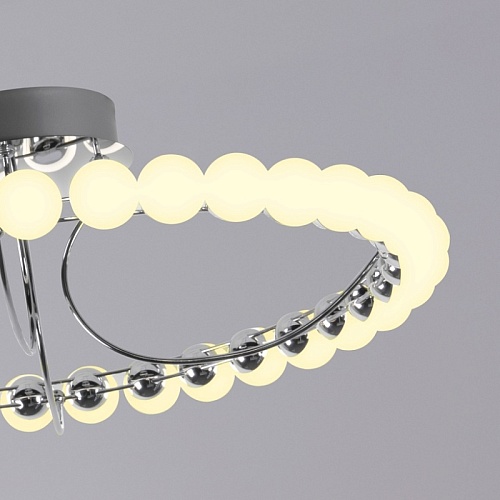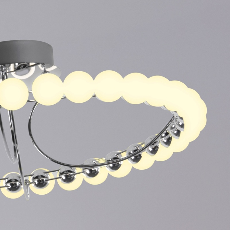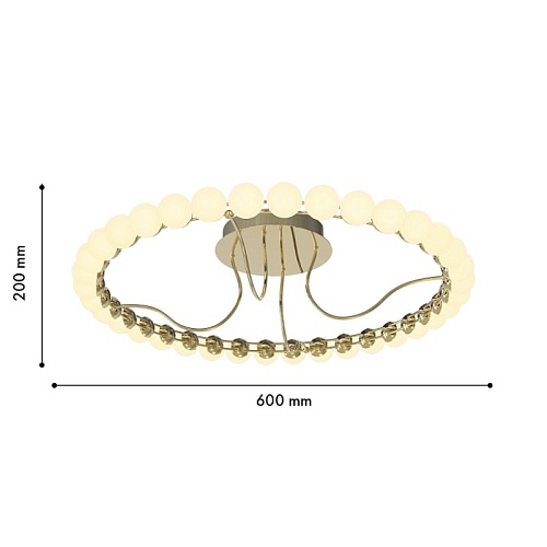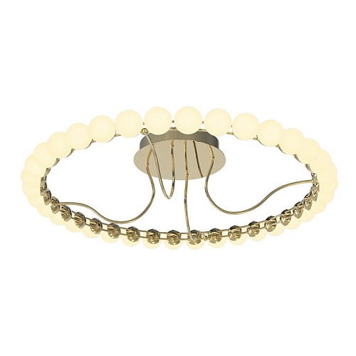 Металлический каркас в цвете латунь, плафоны в форме белых акриловых шариков.