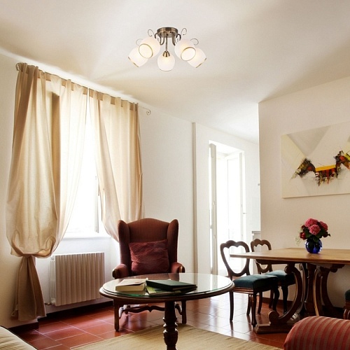 • Важный фактор для потолочных ламп и люстр – направление рассеивания света. Есть различные варианты и направления. В сторону, вверх или вниз, на пол. Если вы выбрали направление «вверх», следует рассмотреть более мощную лампу, так как освещение будет происходить при помощи отраженного от потолка света.