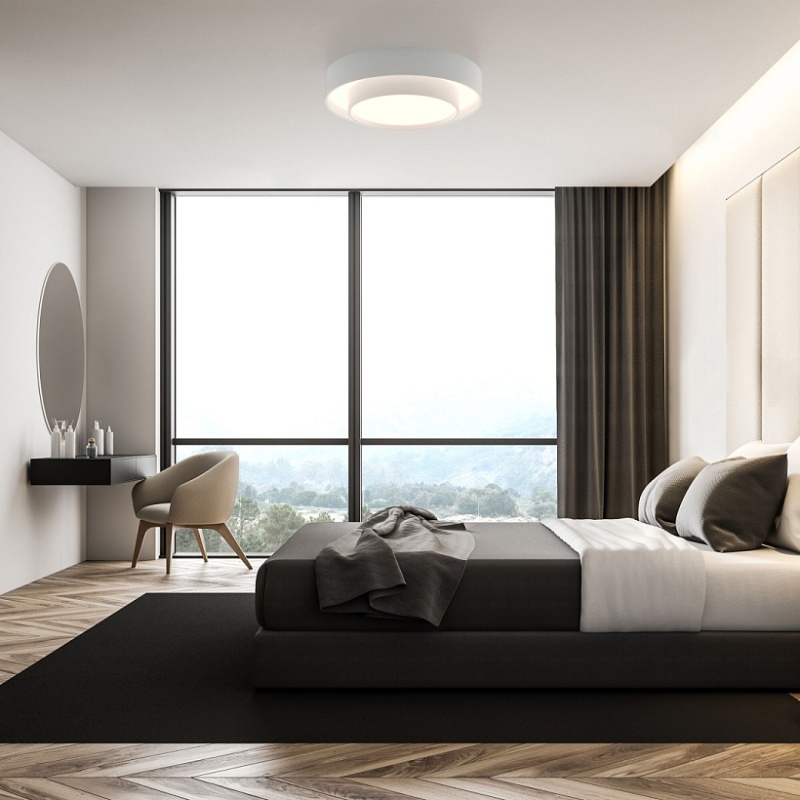 • Важный фактор для потолочных ламп и люстр – направление рассеивания света. Есть различные варианты и направления. В сторону, вверх или вниз, на пол. Если вы выбрали направление «вверх», следует рассмотреть более мощную лампу, так как освещение будет происходить при помощи отраженного от потолка света.