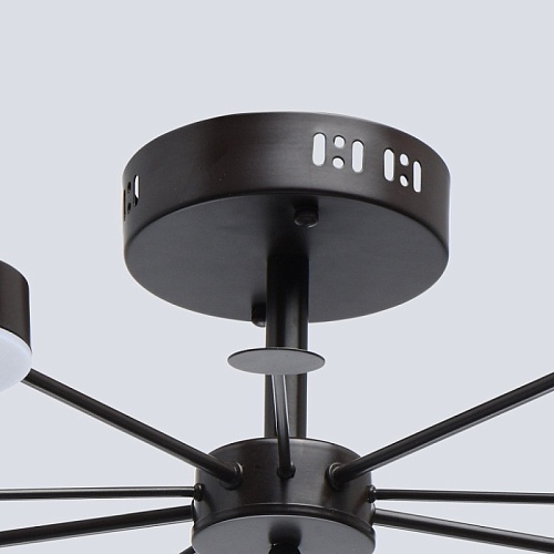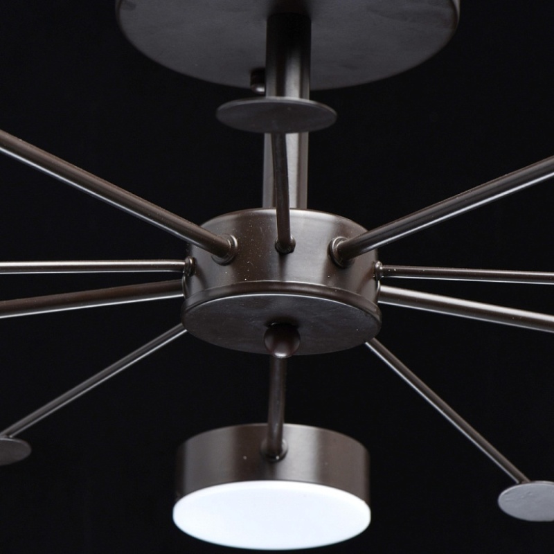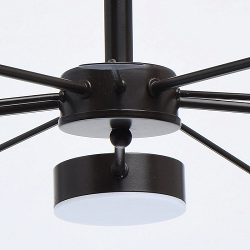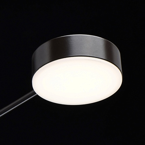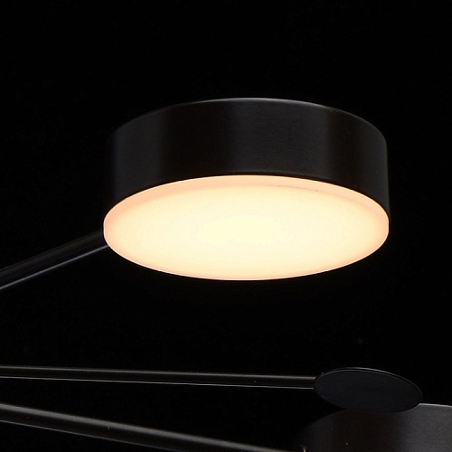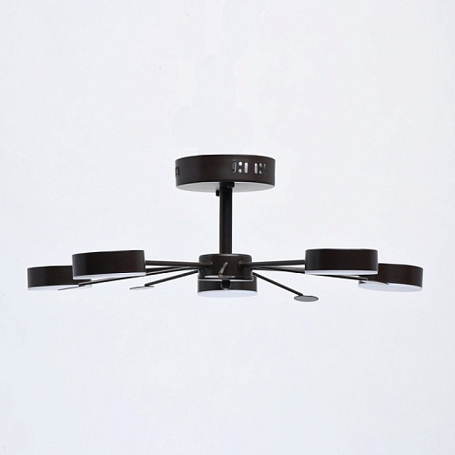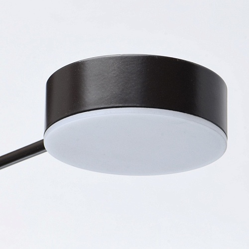 Основание светильника выполнено из металла и окрашено в цвет кофе. Светодиодные источники света закрыты белым матовым акрилом.
