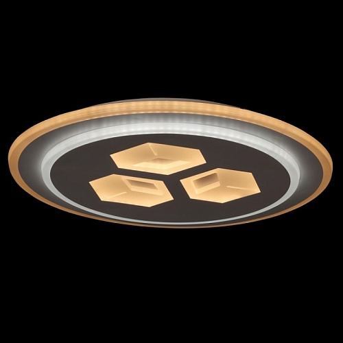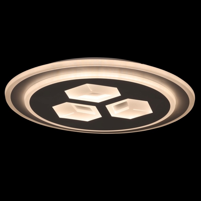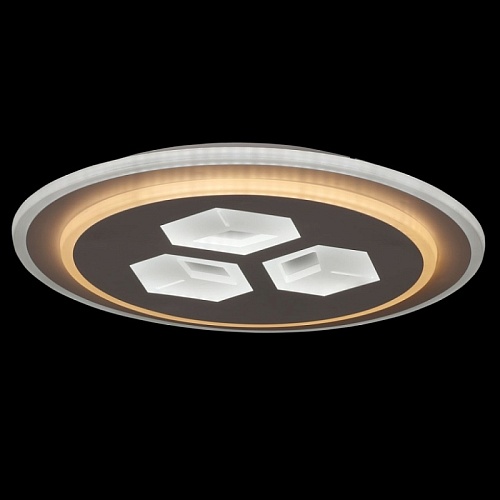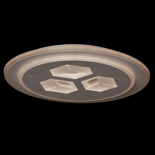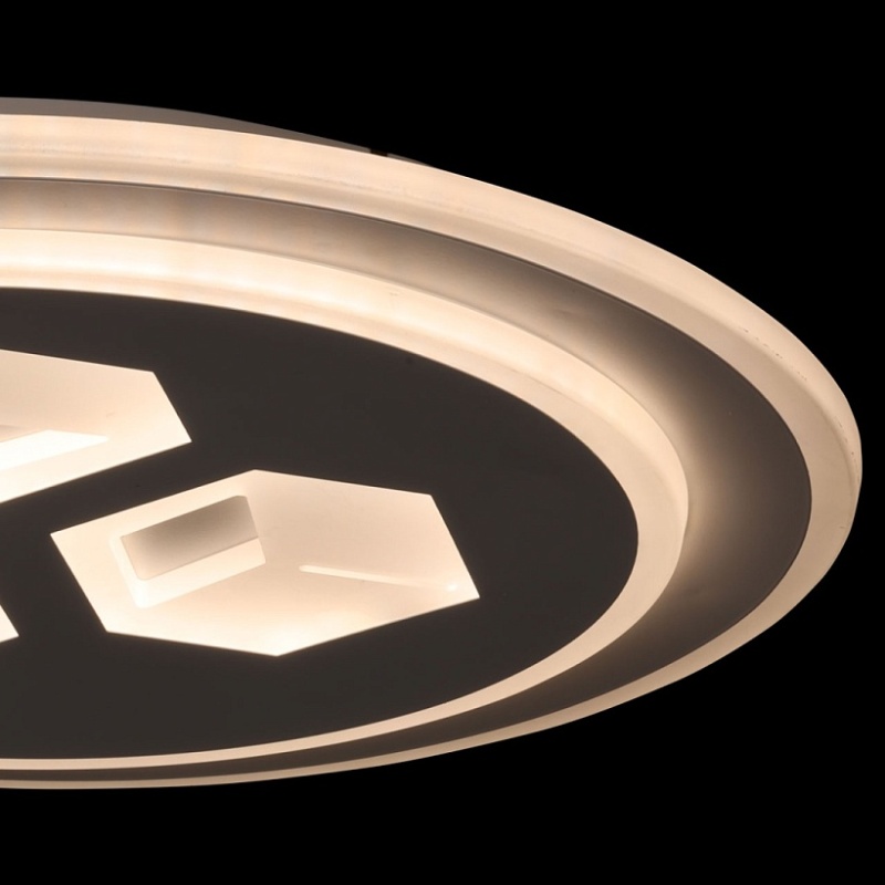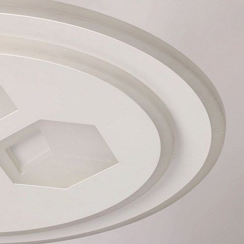 Металлическое основание потолочной люстры окрашено в белый цвет. Корпус плафона выполнен из сплава алюминия с цинком и окрашен в цвет основания. Светодиодные источники света закрыты матовым акрилом с 3D-эффектом.