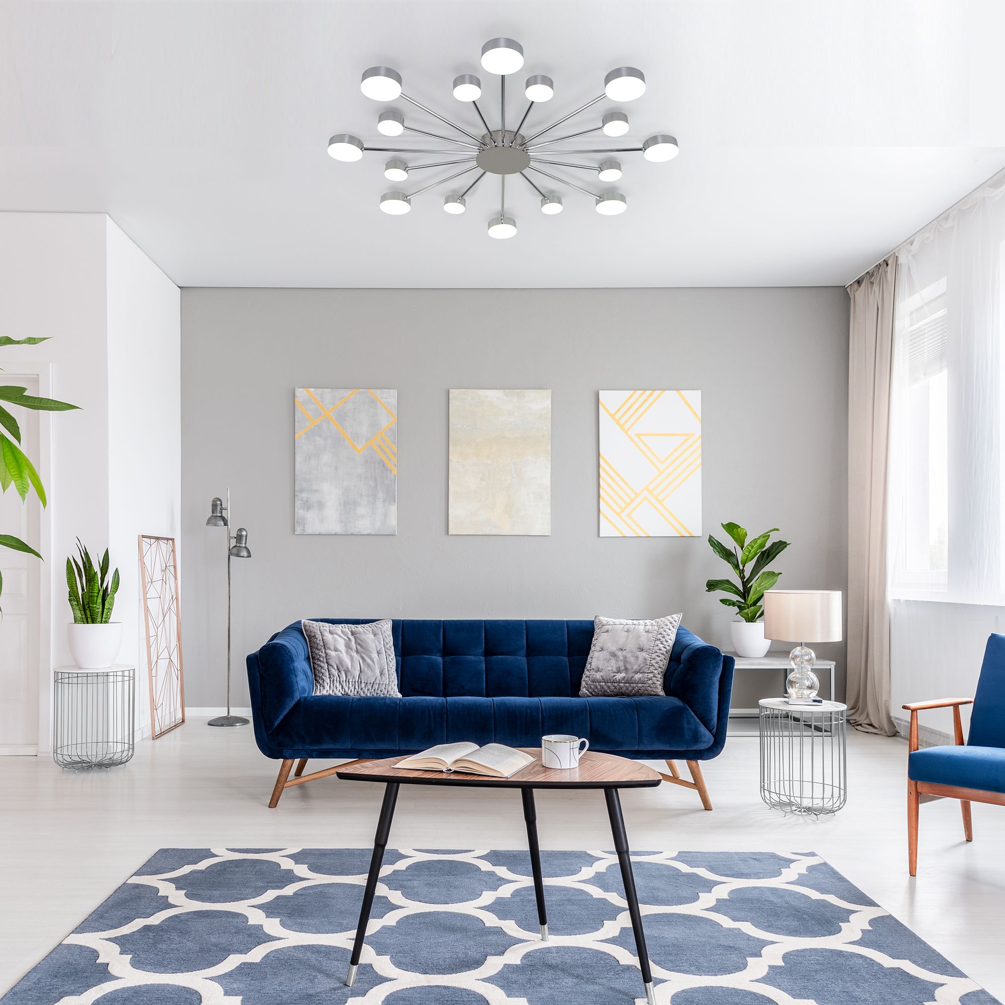 • Важный фактор для потолочных ламп и люстр – направление рассеивания света. Есть различные варианты и направления. В сторону, вверх или вниз, на пол. Если вы выбрали направление «вверх», следует рассмотреть более мощную лампу, так как освещение будет происходить при помощи отраженного от потолка света.
