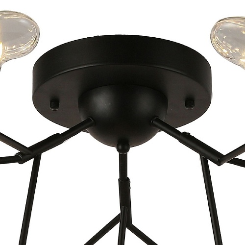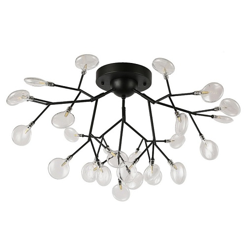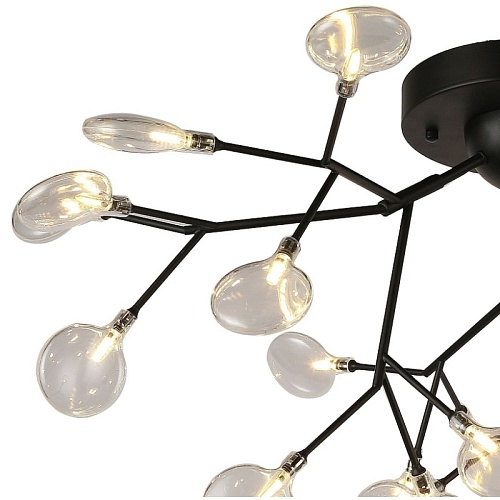 Металлический каркас черного цвета, плоские прозрачные акриловые плафоны.