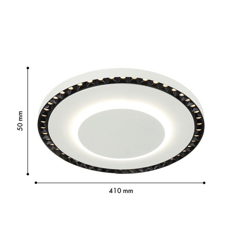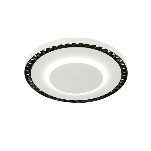 Металлический плафон белого цвета, два типа светодиодной подсветки - лента LED и светодиоды гнездового типа, рассеиватель из прозрачного акрила белого цвета.