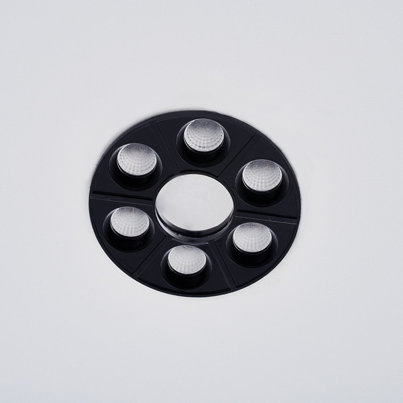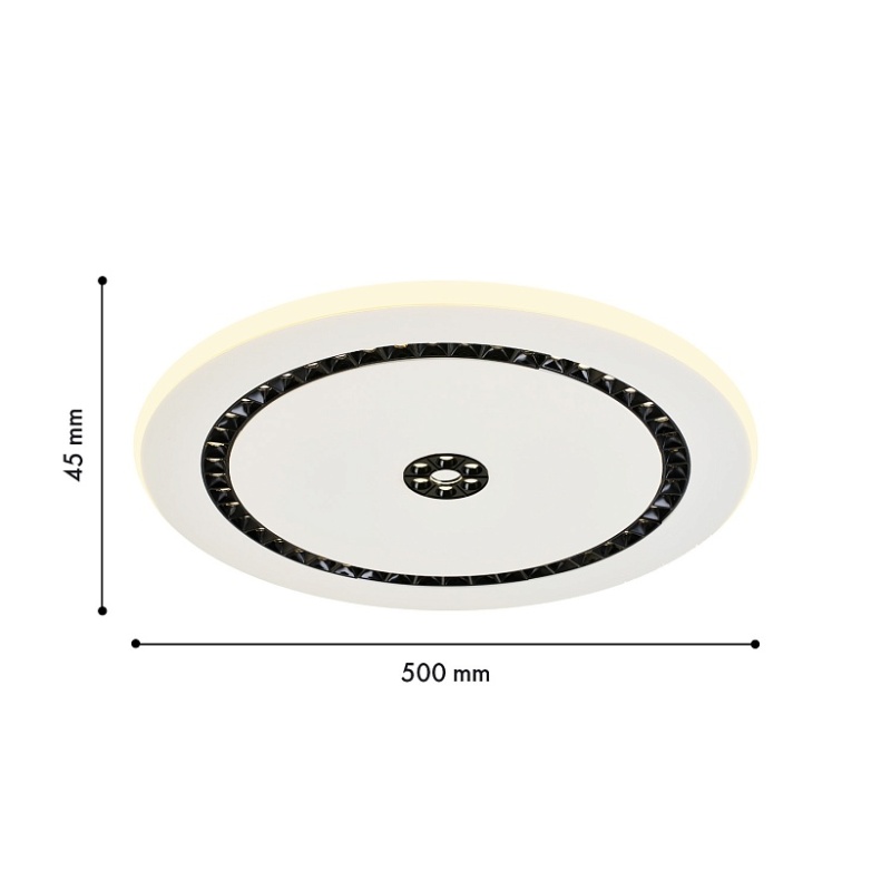 Металлический плафон белого цвета, два типа светодиодной подсветки - лента LED и светодиоды гнездового типа, рассеиватель из прозрачного акрила белого цвета.