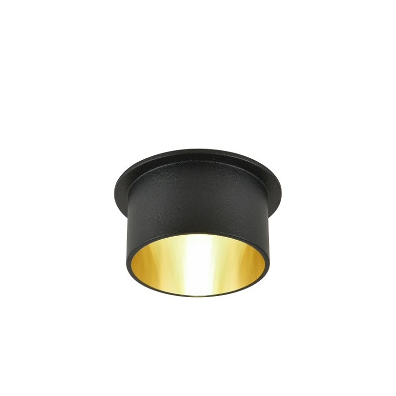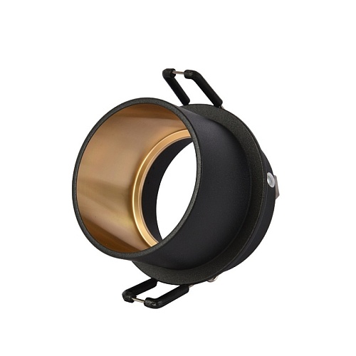 врезной светильник, каркас черного цвета, плафон сочетает в себе два цвета - черный на внешней стороне и золото на внутренней, лампу GU10 можно менять