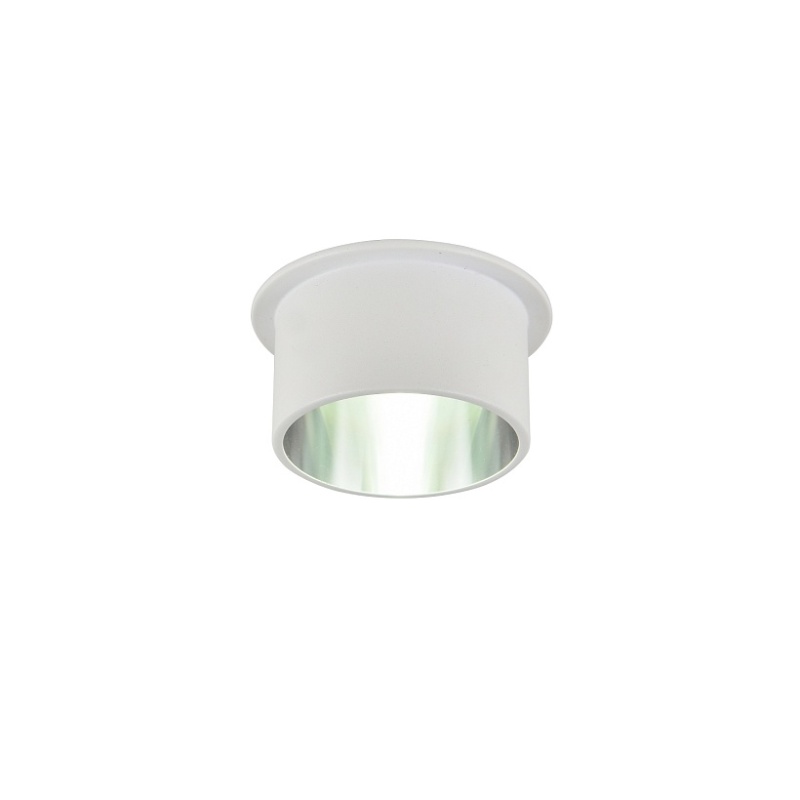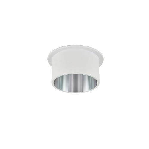 врезной светильник, каркас белого цвета, плафон сочетает в себе два цвета - белый на внешней стороне и серебро на внутренней, лампу GU10 можно менять