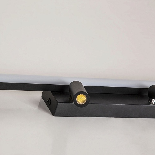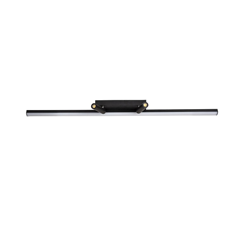 каркас черного цвета, два источника света - профиль со встроенной лентой-LED и два поворотных спота LED, пульт дистанционного управления в комплекте