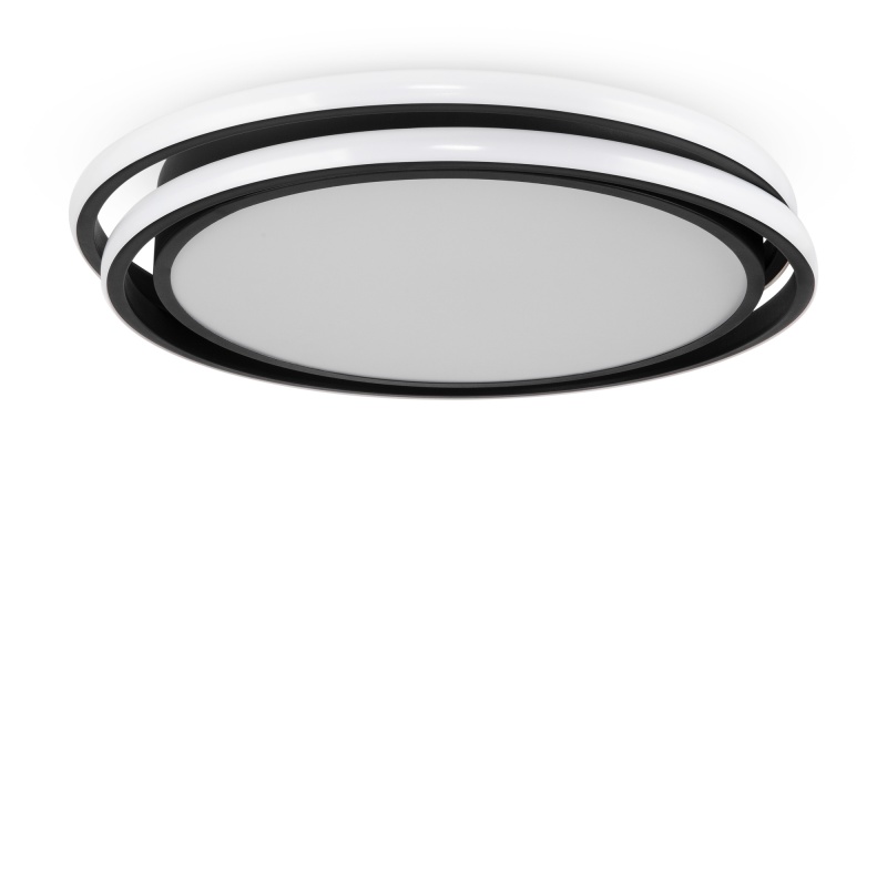 Арматура из металла и акрила. Цвет – черный. Трендовый элемент дизайна – кольца, расположенные под необычным углом. Энергоэффективный LED-источник дает яркую и комфортную для зрения подсветку.