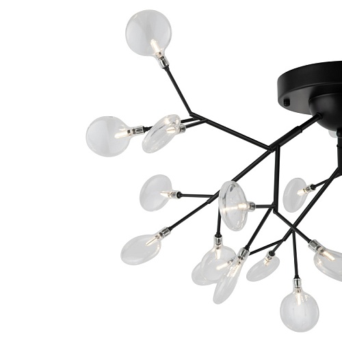 Материал арматуры – металл. Оттенки – черный, белый. Стеклянные плафоны оригинальной формы. Трендовый флористический дизайн. Источник света – лампа G4.