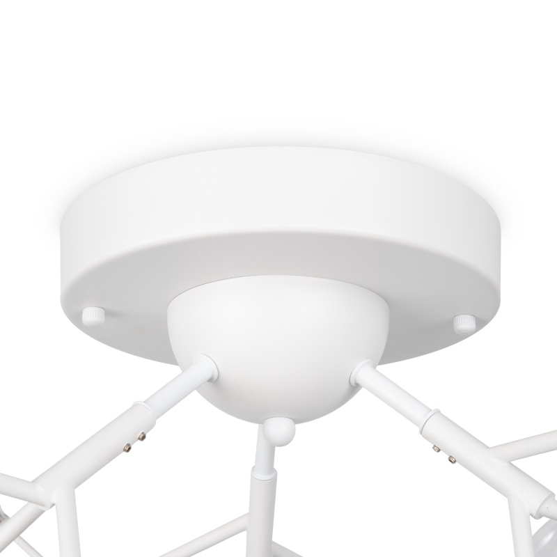 Материал арматуры – металл. Оттенки – черный, белый. Стеклянные плафоны оригинальной формы. Трендовый флористический дизайн. Источник света – лампа G4.