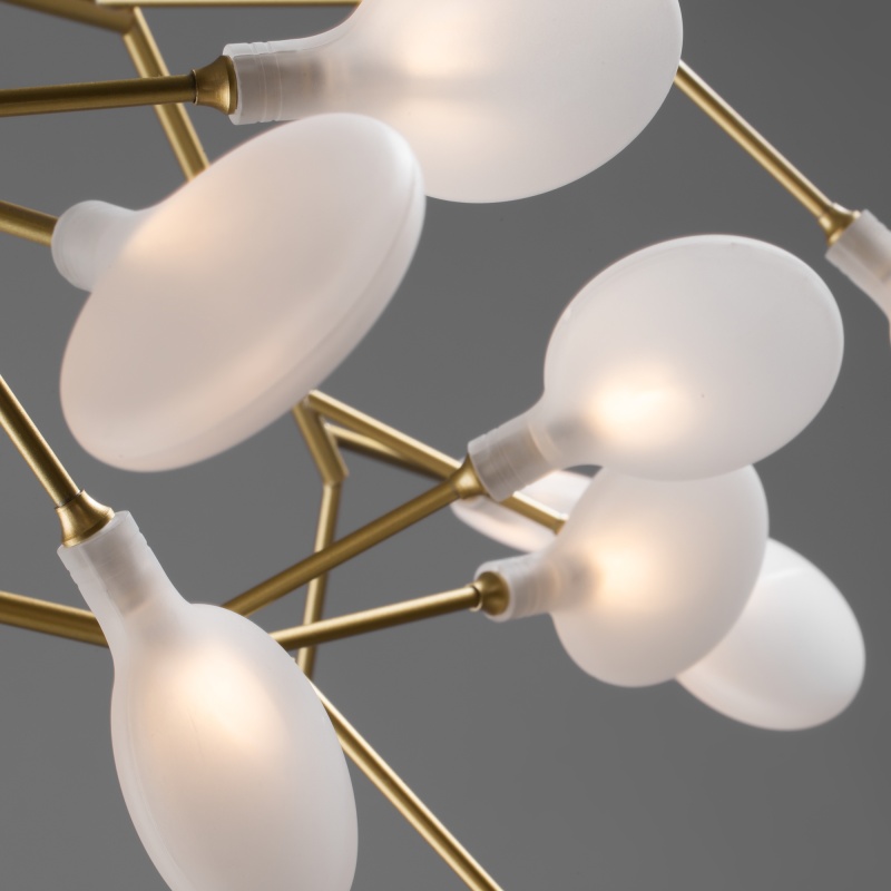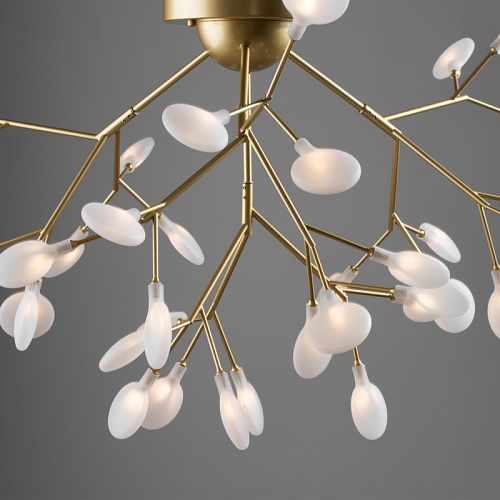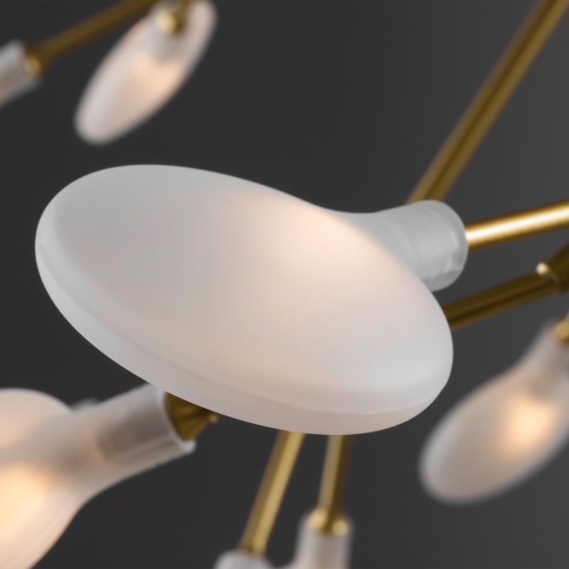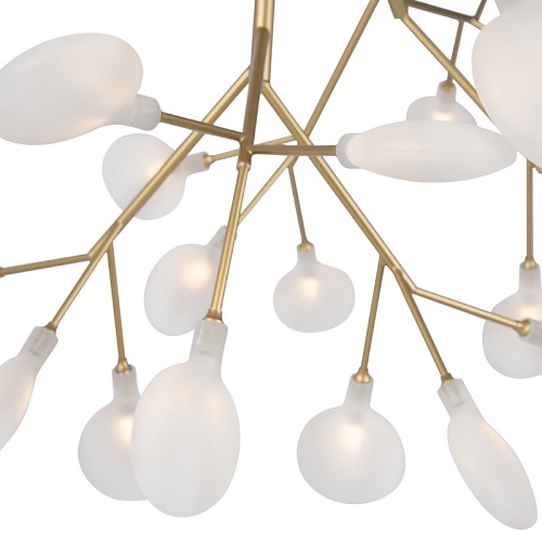 Материал арматуры – металл. Оттенки – черный, белый. Стеклянные плафоны оригинальной формы. Трендовый флористический дизайн. Источник света – лампа G4.