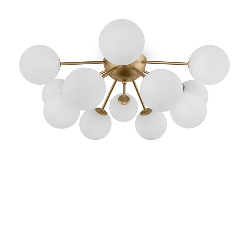 Оригинальная композиция, объединяющая стеклянные плафоны-сферы и металлическую арматуру цвета латуни, актуальна для освещения современных интерьеров Благодаря большому ассортименту серии и наличию в ней люстр различного диаметра и высоты, каждый сможет выбрать светильник необходимых размеров. Разнообразие конструктивных решений также не оставляет равнодушным: ассиметричные светильники и модели с дугообразными рожками-лучами займут достойное место в любой обстановке. Люстры на 12, 9 и 6 плафонов позволяют подобрать оптимальную яркость и мощность подсветки, исходя из размеров помещения.