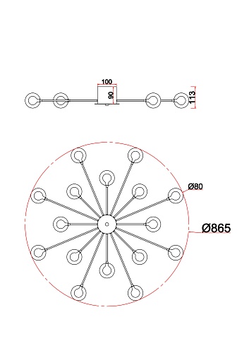 • Диаметр потолочной чаши (мм)