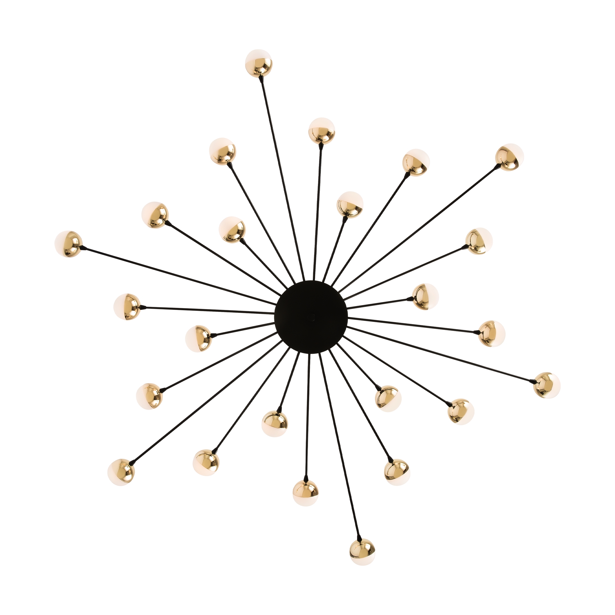 Арматура - металл, цвет - черный, золотой. Плафоны двух видов: из двойного стекла - матового и прозрачного; акриловые с металлическим покрытием половины плафона в цвете латунь. Светильники серии Celebrity отлично подойдут для помещений с не высокими потолками. Источник света - лампа с цоколем G9.