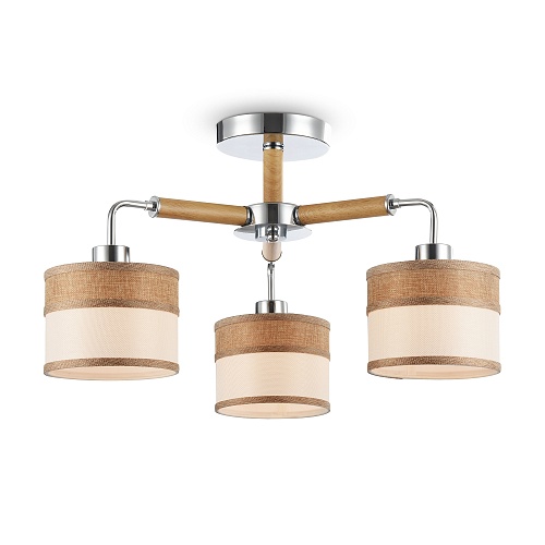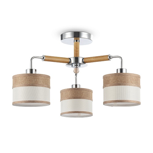 Двухцветные абажуры, сделанные из мешковины, сочетаются с древесной арматурой. Благодаря большому ассортименту изделий серии Helen легко выбрать светильник как для просторных помещений, так и для небольших.