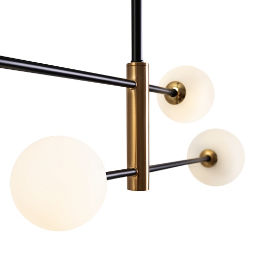 Металлическая арматура. Цвет — чёрный с золотистыми вставками. Плафоны — круглые из белого матового стекла - обеспечивают мягкое заливное освещение. На корпусе бра удобная кнопка для включения. Дизайн — минималистичный Источник света — лампа с цоколем G9.