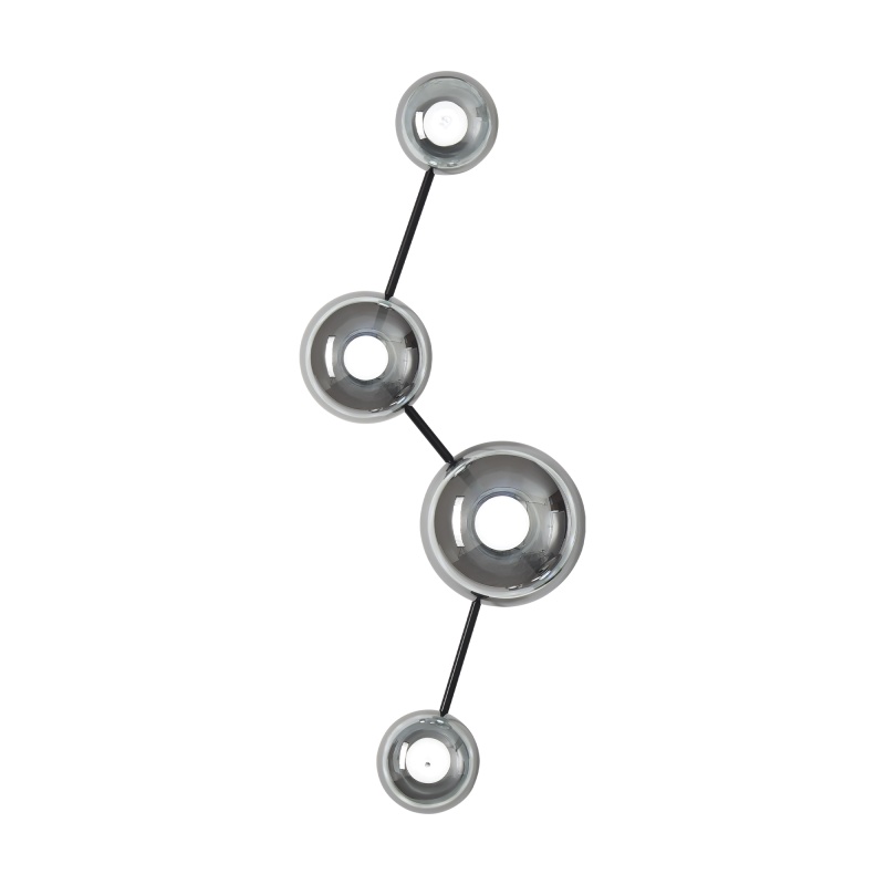 Арматура металл. Цвет черный матовый. Настенные светильники с LED источником освещения и приплюснутые плафоны из стекла графитового оттенка. Необычная форма настенных светильников. Цветовая температура 3000К.