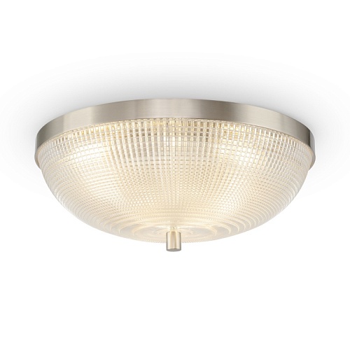 Материал арматуры – металл, оттенки – никель, золото. Плафон – прозрачное фактурное стекло. Традиционная форма античной чаши.
