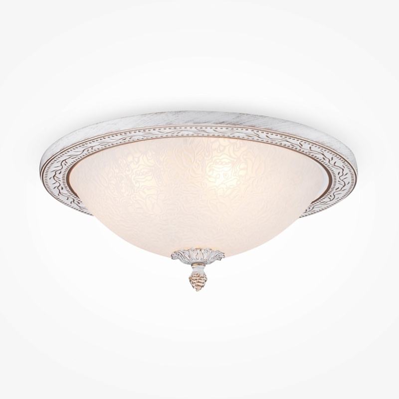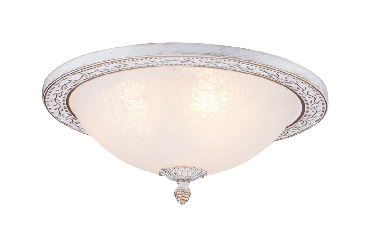 Арматура – металл, оттенки – белый с золотом, коричневый с золотом. Плафон – белое стекло. Декор плафона – пескоструйный рисунок. Обод и наконечник с фло ристическим орнаментом. -