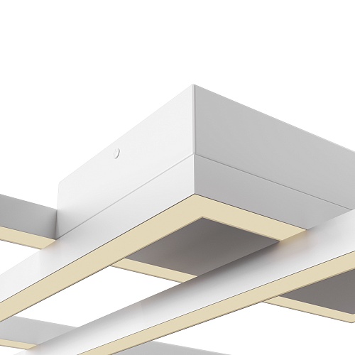 Металлическая арматура, оттенки — белый и черный. Матовый акрил скрывает интегрированные LED-источники. Геометричный дизайн: конструкция состоит из наложенных друг на друга прямоугольников.