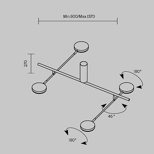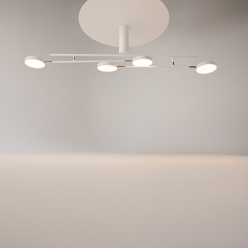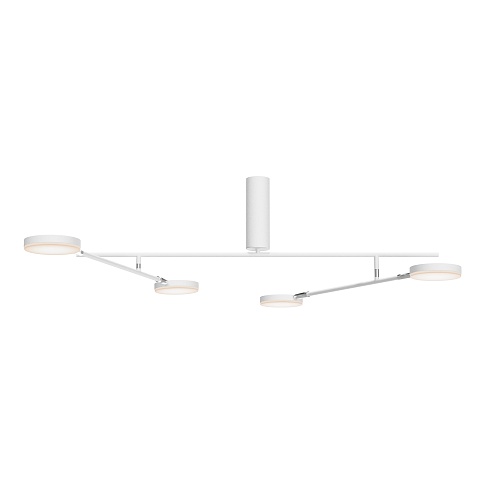 Плафоны и арматура из металла. Цвет рассеивателя — белый, арматура черная или белая. Конструкция предусматривает шарнирный механизм, позволяющий регулировать направление света и высоту светильников. Плафоны вращаются на 90 и 360° (в вертикальной и горизонтальной плоскостях). Угол рассеивания — 120 градусов. Тип света — рассеянный.