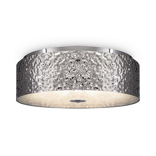 Арматура – металл в цветах хром и золото. Фактурный рисунок нанесен посредством чеканки. Стекло с рельефной поверхностью скрывает источники света. Декора тивный эффект «рябь на воде». Источник света - лампа с цоколем Е14.