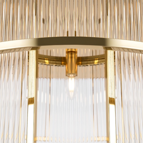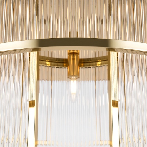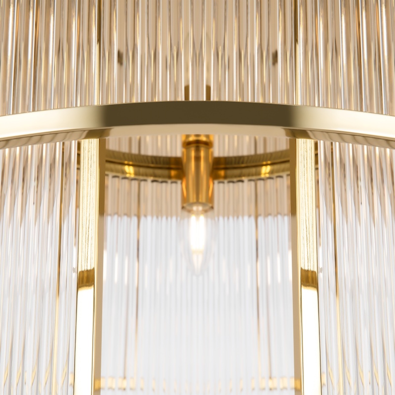 Материал арматуры - металл, цвет - золото. Декоративный элемент из прозрачного стекла в форме рельефных трубок. Цоколь Е14. Лампы в комплект не входят.