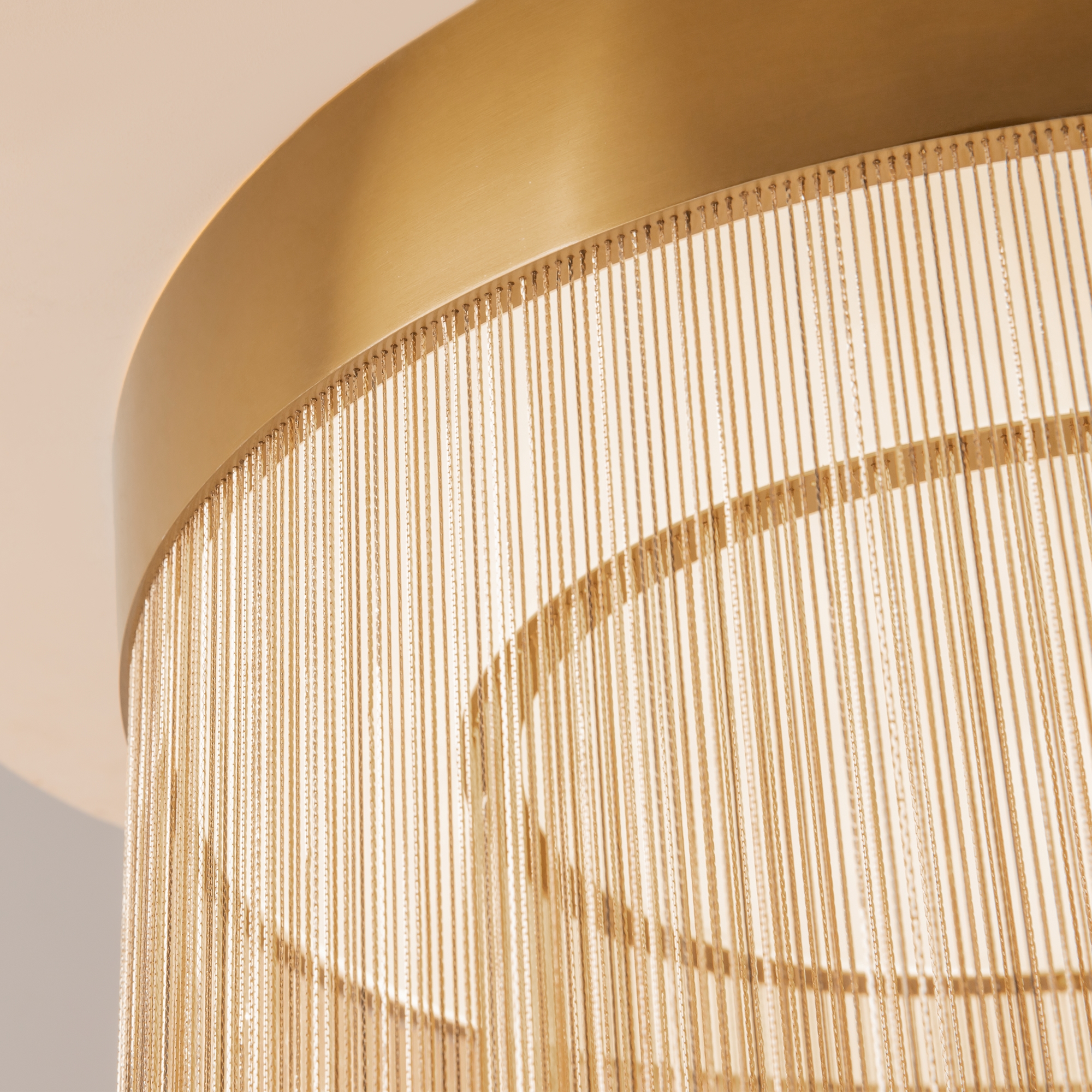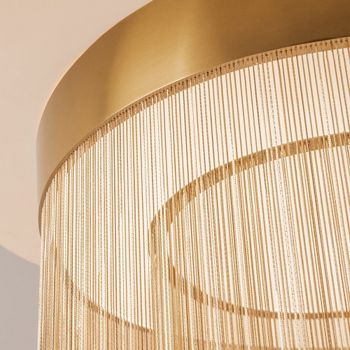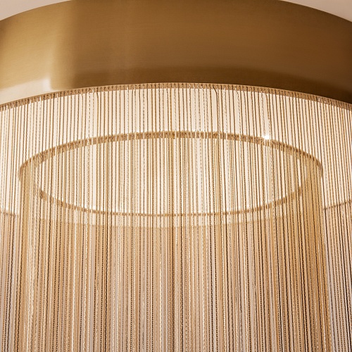 Металлическая арматура, цвет - золото. Мотивы ювелирного искусства в дизайне. Изящные цепочки на корпусе светильника создают переливы бликов. LED источник света. Цветовая температура - 3000К. Регулируемая высота подвесного светильника.