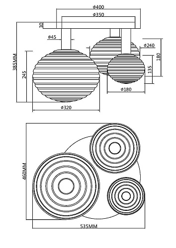 Материал арматуры - металл, цвета - черный, золото. «Динамичные» круглые плафоны со спиральным рельефом. Материал плафонов - стекло, цвета - белый матовый, глянцевый дымчатый. Провод 3 метра, длина регулируется. Источник света - лампы с цоколем Е14, Е27.