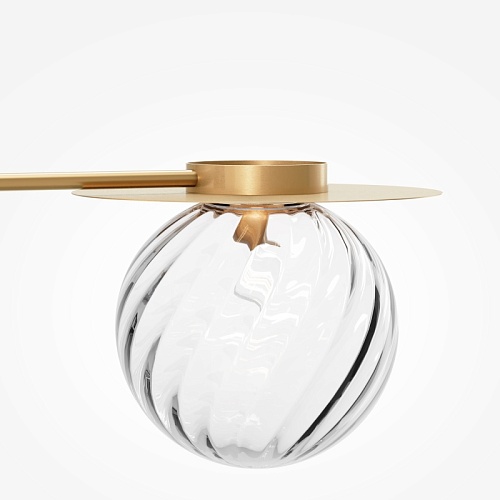 Компактное металлическое основание и арматура цвета латуни. Две модели с плафонами белого цвета и две с разноцветными плафонами: серый, прозрачный, дымчатый и оттенка коньяка. Источник света: цоколь Е14. Компактное основание светильника прилегает к потолку. Функциональное основное освещение. Местоположение разноцветных плафонов можно менять, создавая композиции по своему вкусу. Поверхность плафонов имеет орнамент, при включении светильника на потолке создаются узоры.