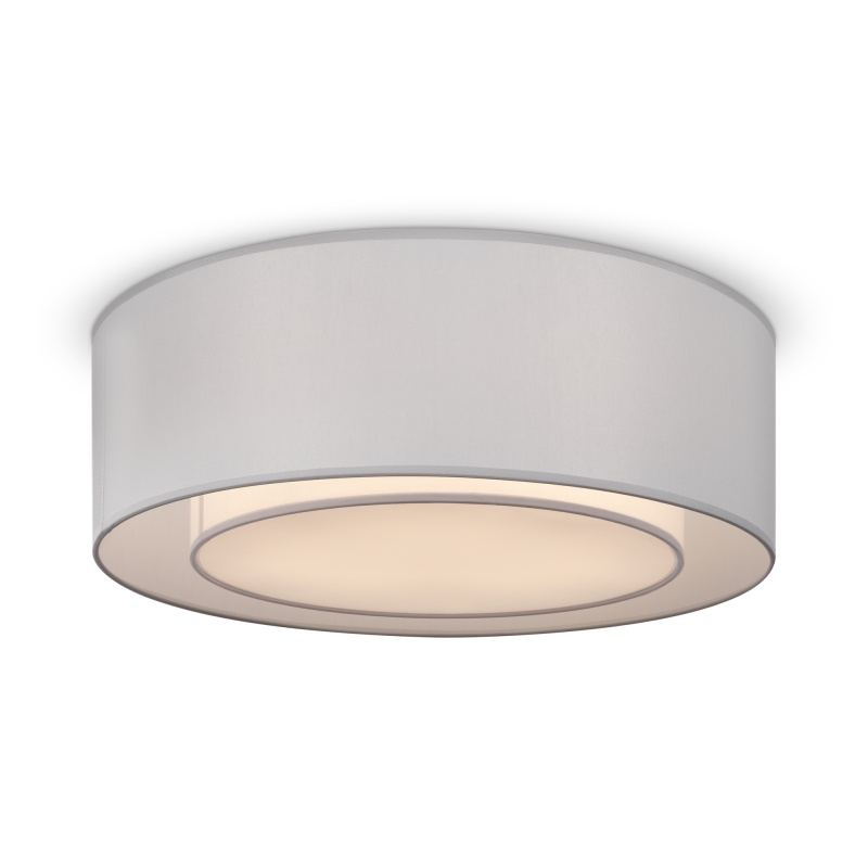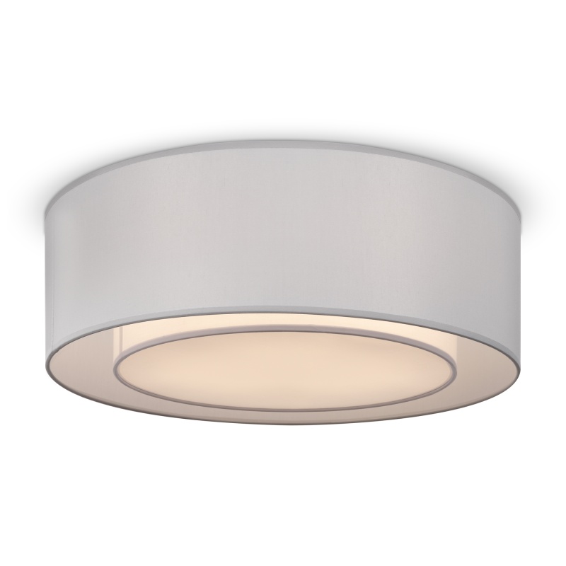 Металлическая арматура. Три цветовых решения: белый и хром, черный и хром, хром. Абажур из текстиля и льна, нанесенного на ПВХ. Цвета — бежевый, серый, белый. Источник света в подвесных моделях скрыт под матовым стеклом. Торшеры и настольные лампы с регулируемым кронштейном. Лампа с цоколем Е27.