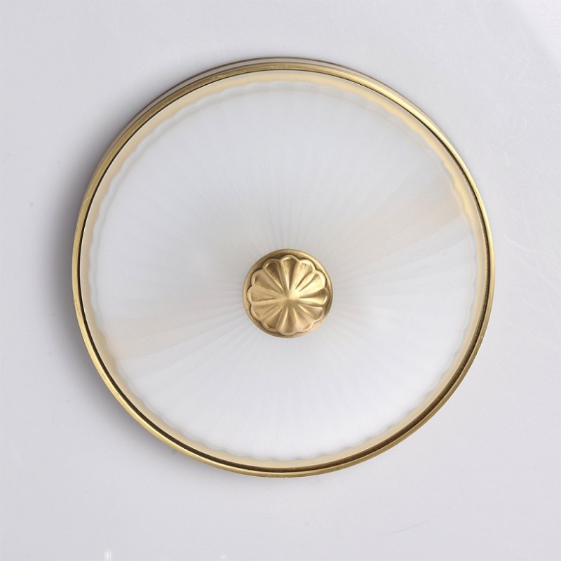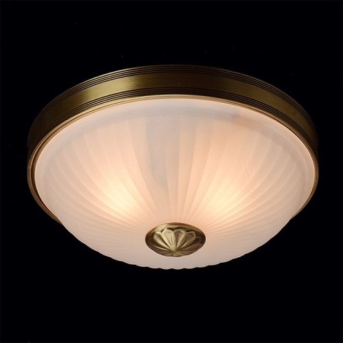 Корпус светильника выполнен из латуни, покрыт патиной и защитным лаком. Светильник декорирован плафоном, выполненным из стекла отлитого на сложной форме и обработанного пескоструйным матированием. Центральная часть плафона декорирована элементом из латуни, изготовленным по технологии художественного литья.