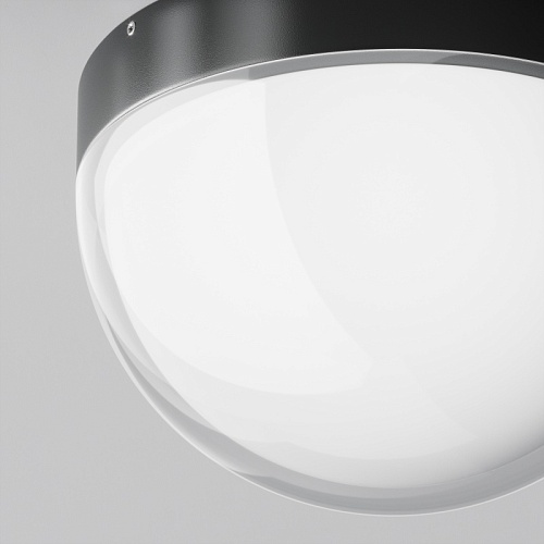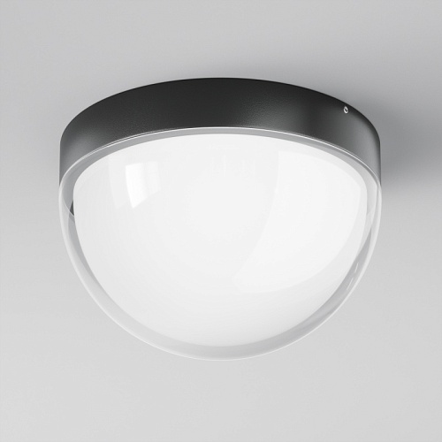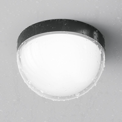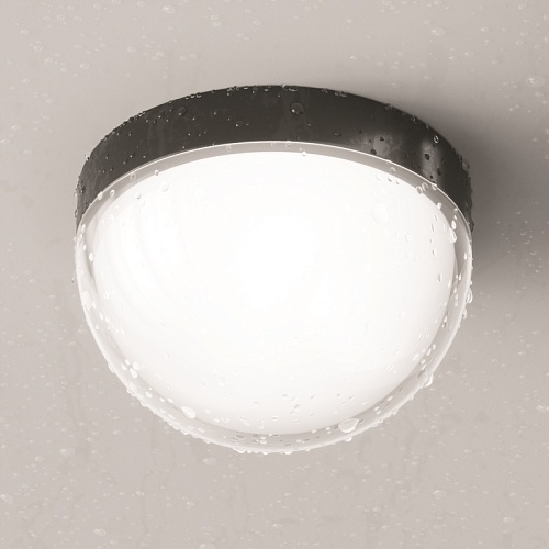 Материал корпуса - алюминий, цвет - графит. Двойной рассеиватель. Внутренний - белый матовый акрил, верхний - прозрачный пластик. LED-источник света, цветовая температура - 3000К. Степень защиты IP54. Подходит для использования как на улице, так и внутри помещения.