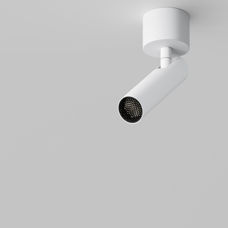 Материал корпуса – металл; цвет – белый, чёрный и латунный. Миниатюрные размеры. Плафон из двух частей. Горизонтальный и вертикальный поворотный механизм. LED-источник света. Цветовая температура – 3000К или 4000К. Высокий коэффицициент цветопередачи >90.