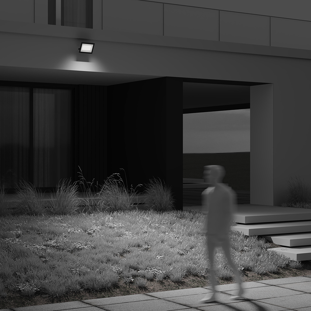 Прожекторы для освещения экстерьеров, рабочих пространств, производственных и промышленных помещений. Материал корпуса — алюминий. Цвет — чёрный. LED-источник света. Два варианта цветовой температуры - 4000К и 6500К. Пять размеров с соответствующими вариантами мощности — 10, 30, 50 Вт с датчиком движения. Модели 100 и 150 Вт без датчиков движения. Высокая степень защиты от пыли и влаги IP65.