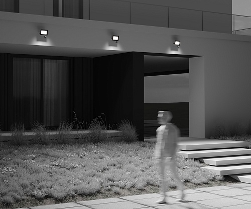 Прожекторы для освещения экстерьеров, рабочих пространств, производственных и промышленных помещений. Материал корпуса — алюминий. Цвет — чёрный. LED-источник света. Два варианта цветовой температуры - 4000К и 6500К. Пять размеров с соответствующими вариантами мощности — 10, 30, 50 Вт с датчиком движения. Модели 100 и 150 Вт без датчиков движения. Высокая степень защиты от пыли и влаги IP65.