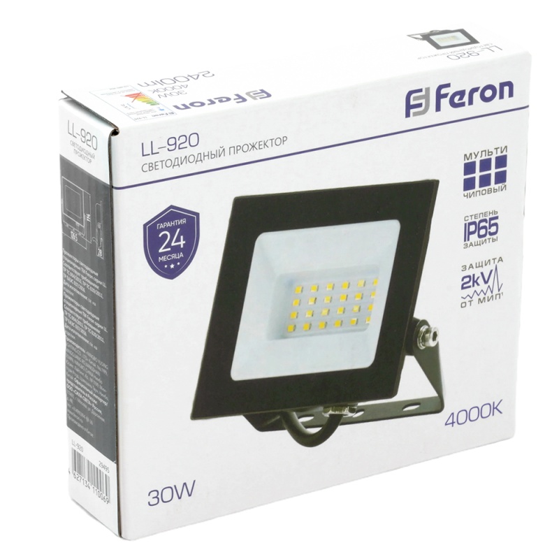 Характеристики Светодиодный прожектор Feron LL-920 IP65 30W 4000K
