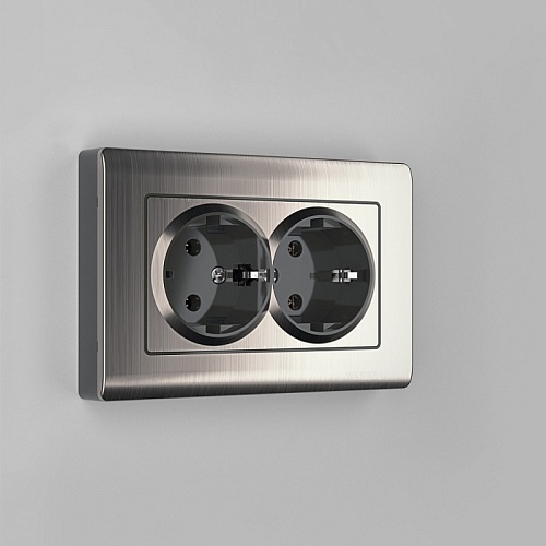Рамка из металла для двойной розетки Metallic глянцевый никель WL02-Frame-01-DBL