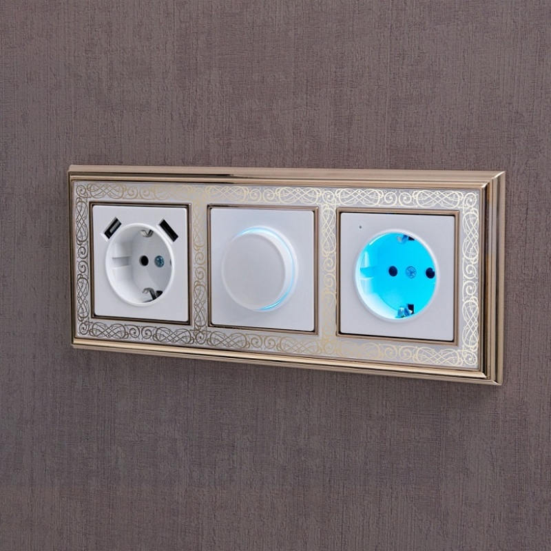 Характеристики Рамка на 3 поста (золото/белый) W0031429