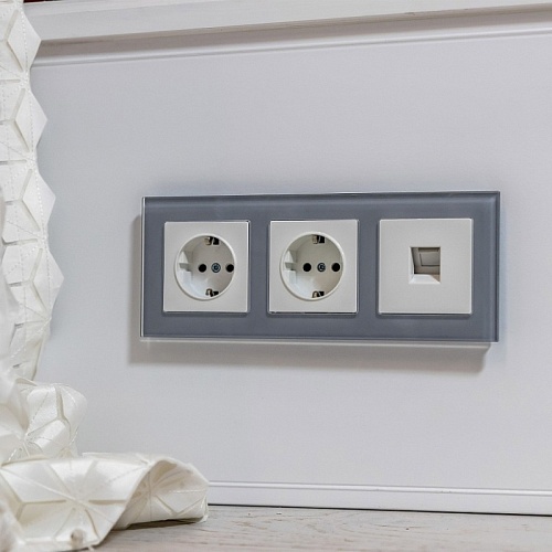 Отзывы о Рамка на 3 поста (серый,стекло) W0031115