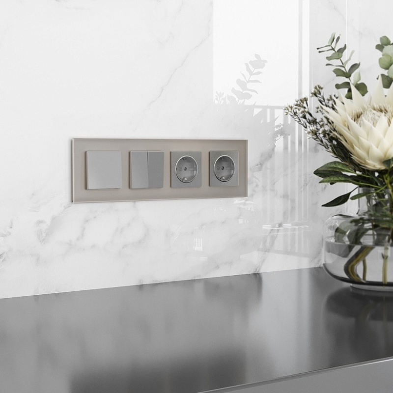 Характеристики Рамка на 4 пост Senso (дымчатый, стекло soft-touch) W0043117