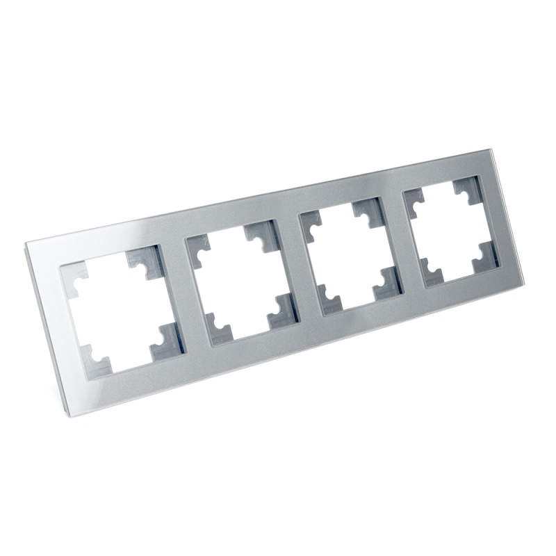 Рамка 4-местная, стекло, STEKKER, GFR00-7004-03, серия Катрин, серебро