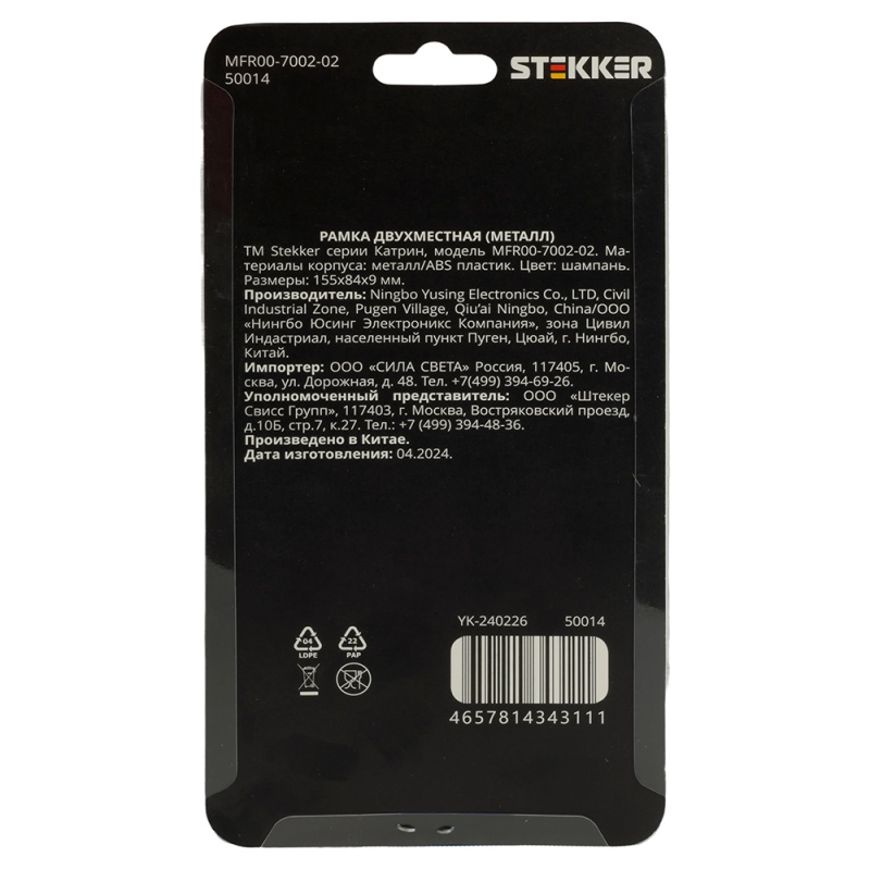 Отзывы о Рамка 2-местная, металл, STEKKER, MFR00-7002-02 , серия Катрин, шампань