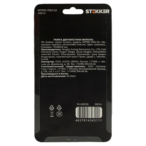 Характеристики Рамка 2-местная, металл, STEKKER, MFR00-7002-02 , серия Катрин, шампань