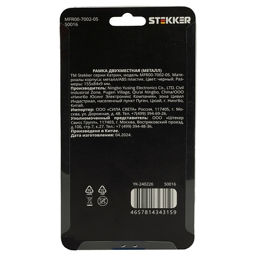 Характеристики Рамка 2-местная, металл, STEKKER MFR00-7002-05, серия Катрин, черный